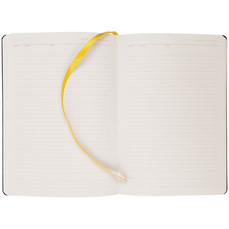 Ежедневник с гибкой обложкой, выполнен из материала Latte, желтый, дополнен ляссе в цвет обложки.
