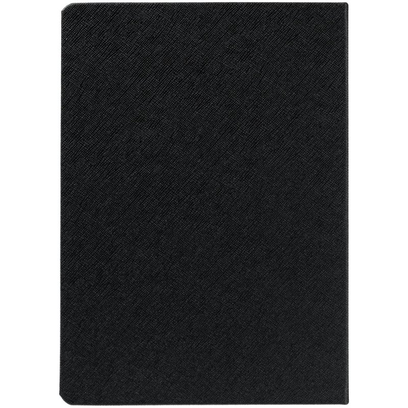 Ежедневник с твердой обложкой и золотистым обрезом, выполнен из материала Saffian, черный АА, дополнен ляссе в цвет обложки.