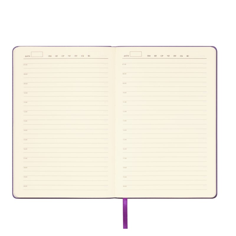 Матовое покрытие Soft Touch с деликатным пудровым эффектом подарит неповторимое тактильное удовольствие. А кремовые форзац, нахзац и срез блока создадут гармоничное обрамление для гладких шелковистых страниц кремового оттенка. Элегантное атласное ляссе поможет вам легко ориентироваться в записях.