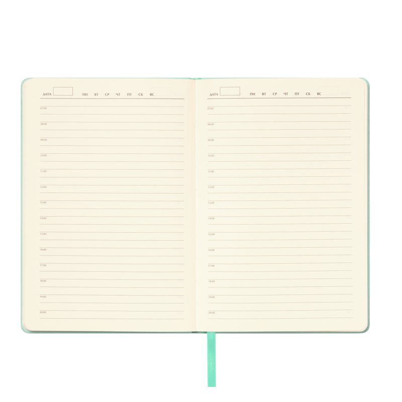 Матовое покрытие Soft Touch с деликатным пудровым эффектом подарит неповторимое тактильное удовольствие. А кремовые форзац, нахзац и срез блока создадут гармоничное обрамление для гладких шелковистых страниц кремового оттенка. Элегантное атласное ляссе поможет вам легко ориентироваться в записях.