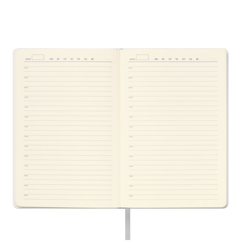 Матовое покрытие Soft Touch с деликатным пудровым эффектом подарит неповторимое тактильное удовольствие. А кремовые форзац, нахзац и срез блока создадут гармоничное обрамление для гладких шелковистых страниц кремового оттенка. Элегантное атласное ляссе поможет вам легко ориентироваться в записях.