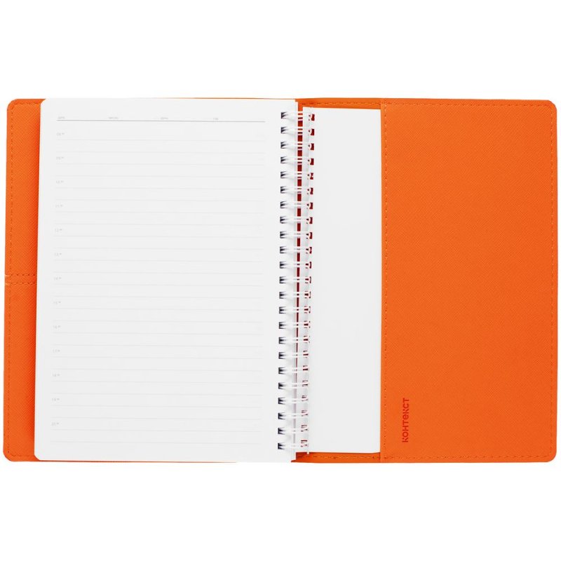 Ежедневник с блоком на пружине в твердой обложке, выполнен из материалов Nice Touch, оранжевый ОО, Soft Touch Pearl и Soft Touch оранжевый.