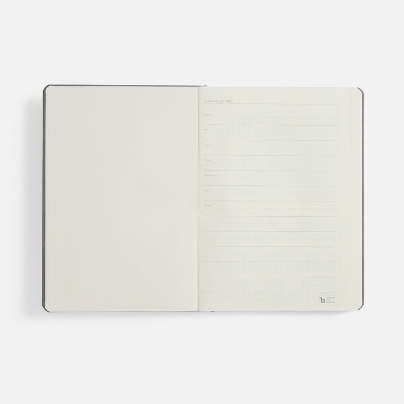 Ежедневник с твердой обложкой, выполнен из материала Nubuck Touch, серый СС, дополнен ляссе темно-серого цвета.