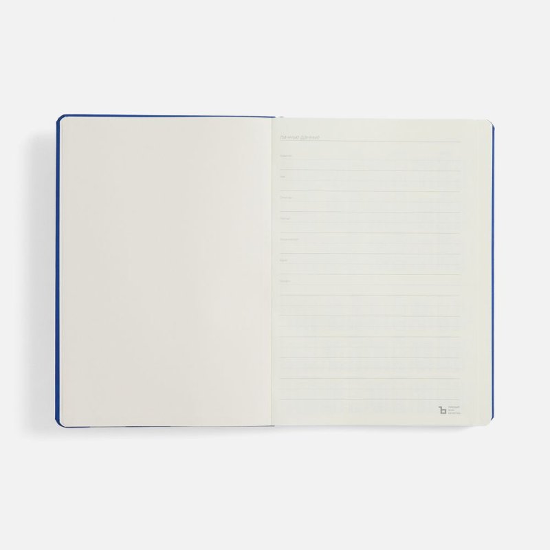 Ежедневник с твердой обложкой, выполнен из материала Nubuck Touch, синий НН, дополнен ляссе темно-синего цвета.
