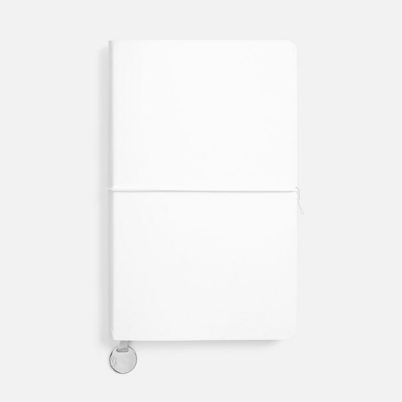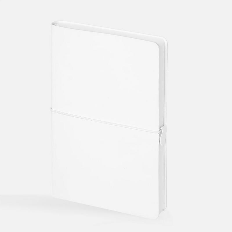 Ежедневник с гибкой обложкой, выполнен из материала Waltz, белый BB, дополнен ляссе в цвет обложки с металлическим шильдом.