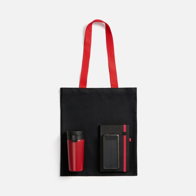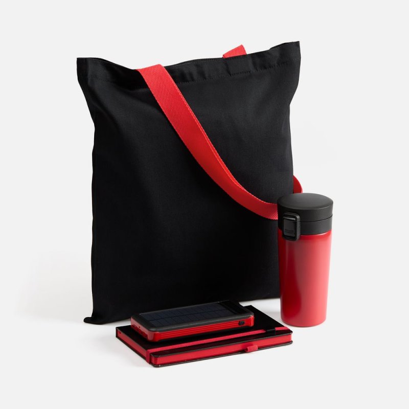 - 10766.35 Холщовая сумка BrighTone, черная с красными ручками