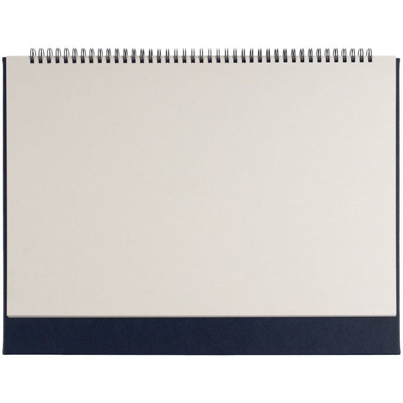 Настольный недатированный планер на открытой пружине. Обложка из белого мелованного картона, подложка из плотного картона в материале Petrus, тёмно-синий XX.