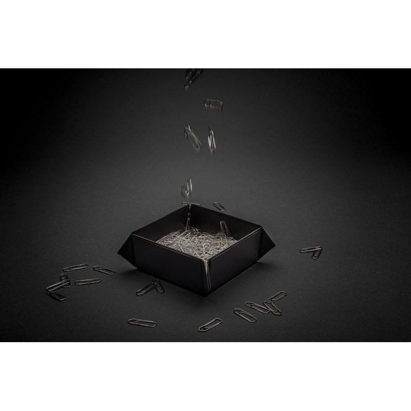 Со складным контейнером поддерживать порядок станет проще. Он небольшой и идеально подходит для рабочего стола, прикроватной тумбочки или прихожей. Любите минимализм? Эта вещь для вас: контейнер выглядит стильно и строго, он однотонный, глубокого черного цвета. Контейнер оснащен магнитами и хорошо держит форму, а если вам понадобится его убрать, он не займет много места в ящике. Изготовлен из переработанного полиуретана и поставляется в крафтовой упаковке, сертифицированной FSC®. Сертифицировано RCS. Эта сертификация полностью контролирует путь поставок переработанных материалов и гарантирует их наличие в изделии.