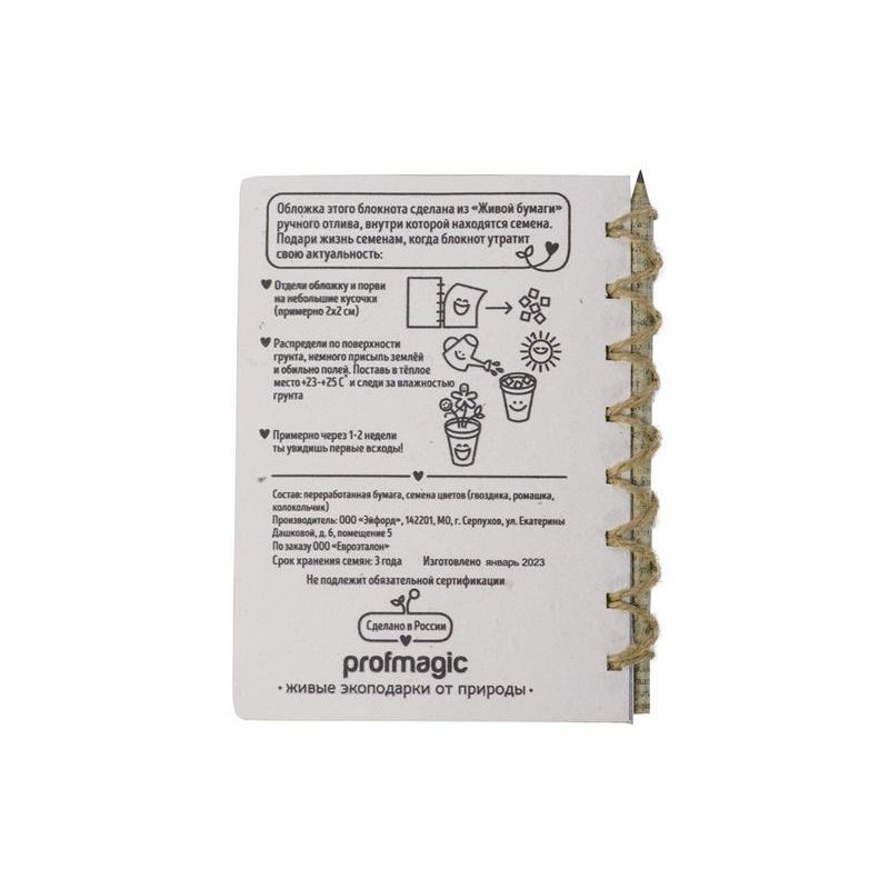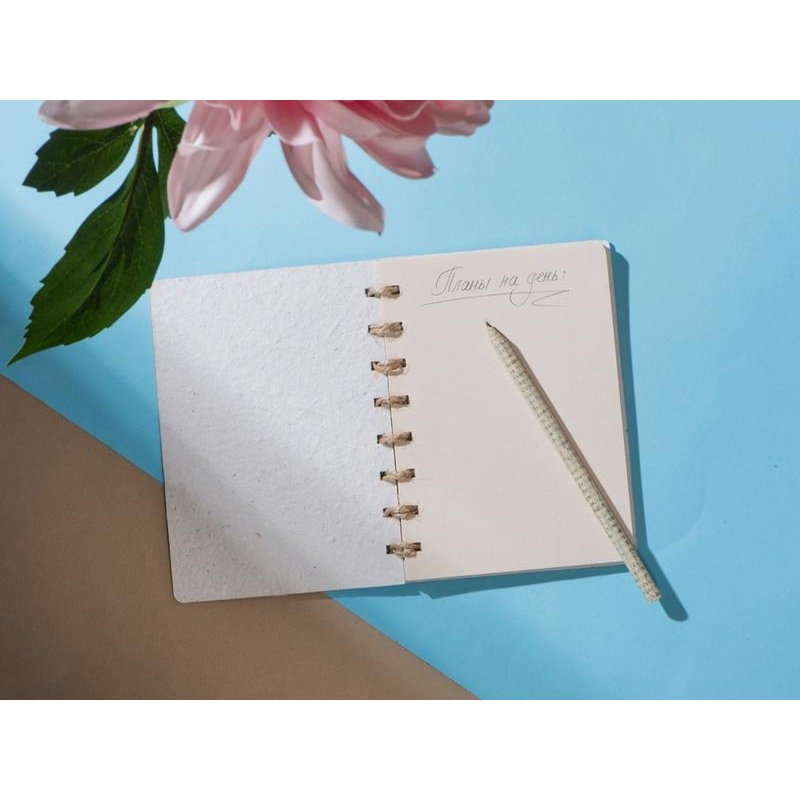 Живой Блокнот - это блокнот ручной работы с семенами гвоздики, ромашки и колокольчика внутри обложки. Блок на 50 листов сделан из экологичной неотбеленной бумаги, вместо пружины используется льняной шпагат. Блокнот поставляется с бумажным карандашом в наборе. После использования блокнота, вырвите обложку, порвите ее на кусочки и посадите в землю. Поливайте и уже через несколько недель вы увидите первые всходы.