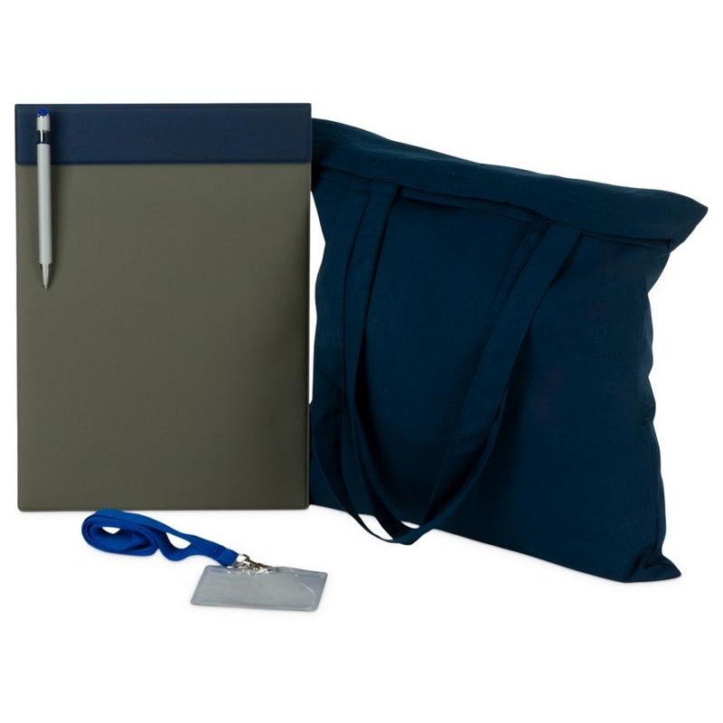Базовый набор для конференций. В наборе: магнитный планшет для бумаг, ручка для записей, ланъярд и чехол для бейджа участника и шоппер, в который все можно удобно сложить.