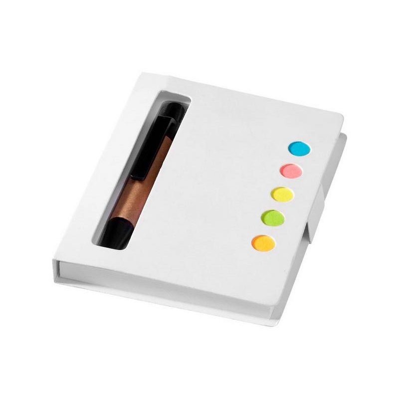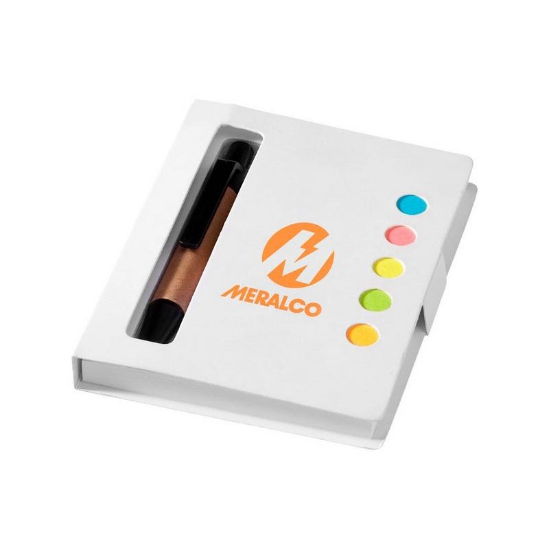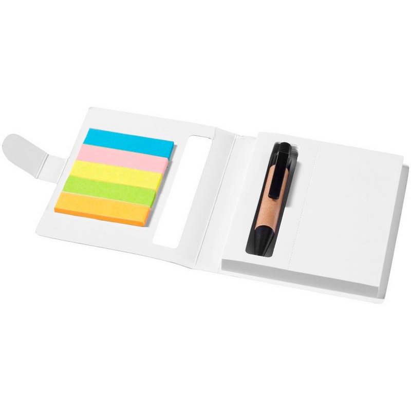 Набор цветных стикеров с шариковой ручкой и блоком из 80 белых отрывных листков. Очень удобный и функциональный аксессуар для офиса, а также отличный промо-сувенир. На обложку из уплотненного картона возможно нанесение логотипа вашей компании.