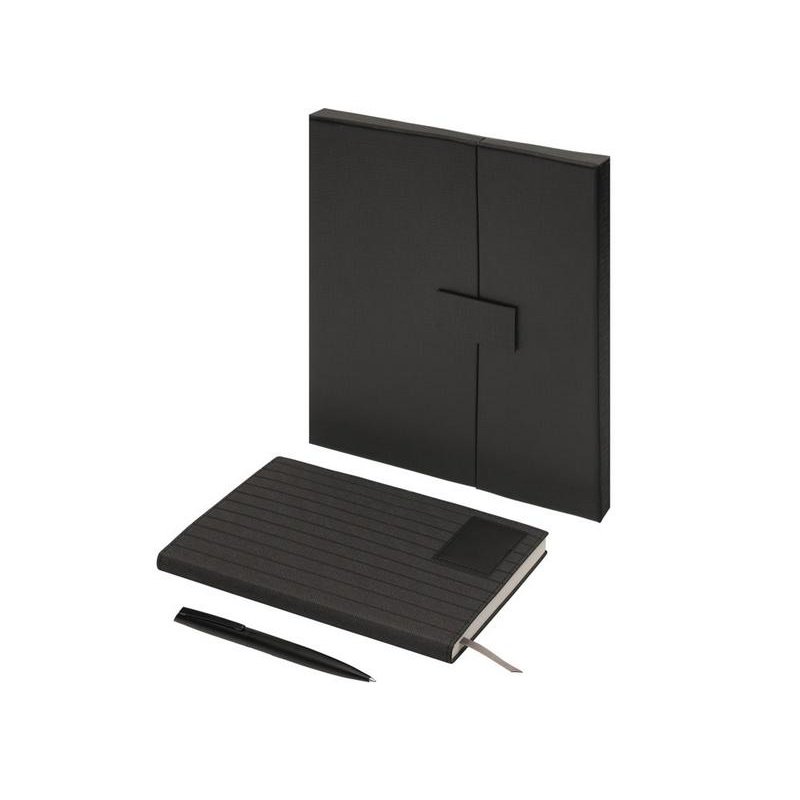 Внутри блокнота - 80 листов кремовой бумаги 80 г/м2 с FSC-сертификатом ответственного лесопользования. Стержень ручки заправлен синими немецкими чернилами Dokumental и швейцарским пишущим узлом Premec, что обеспечивает мягкость и плавность письма.