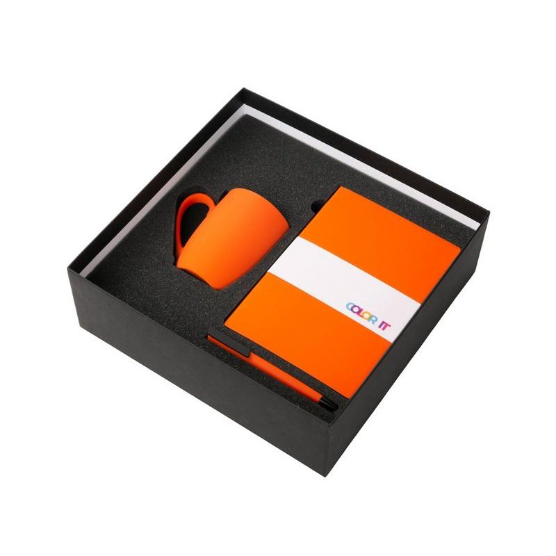 - Материал товара:блокнот - искусственная кожа с покрытием soft-touch, ручка - пластик с покрытием soft-touch, кружка - фарфор с покрытием soft-touch.