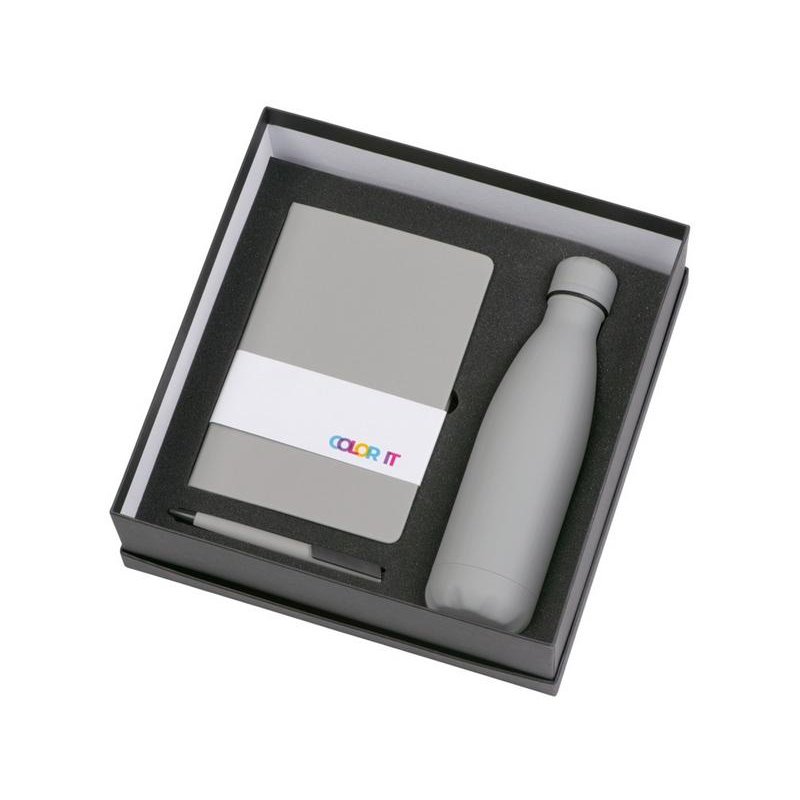 - Материал товара:блокнот- искусственная кожа с покрытием soft-touch, ручка- пластик с покрытием soft-touch, термобутылка- нержавеющая cталь с покрытием soft-touch