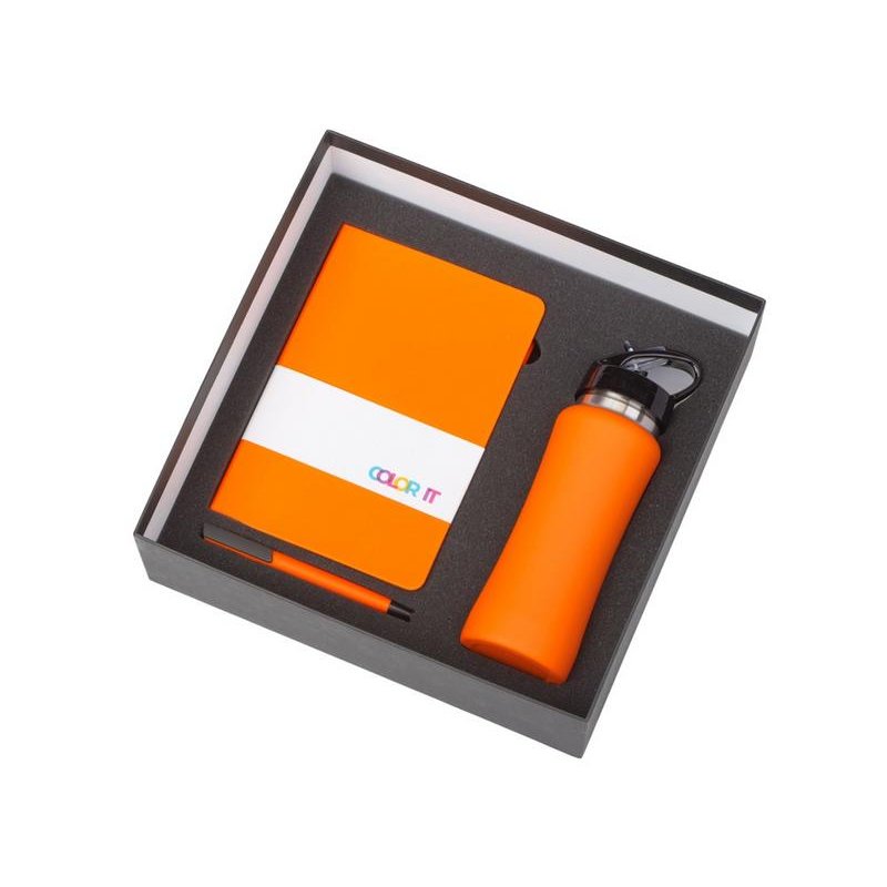 - Материал товара:блокнот- искусственная кожа с покрытием soft-touch, бутылка- нержавеющая cталь с покрытием soft-touch, ручка- пластик с покрытием soft-touch