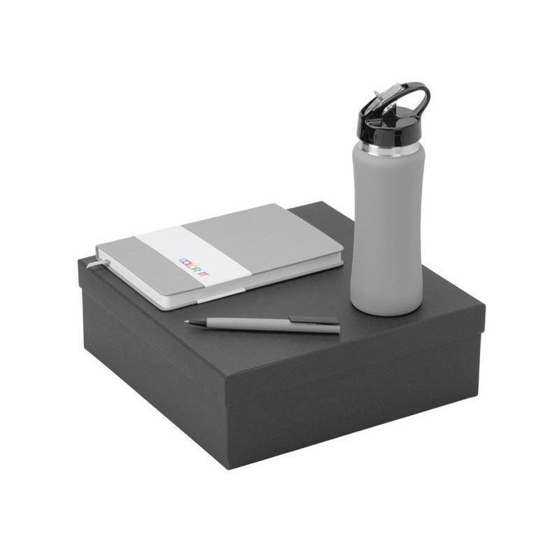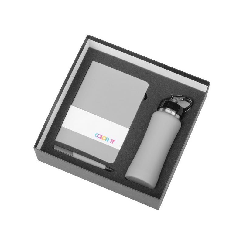 - Материал товара:блокнот- искусственная кожа с покрытием soft-touch, бутылка- нержавеющая cталь с покрытием soft-touch, ручка- пластик с покрытием soft-touch
