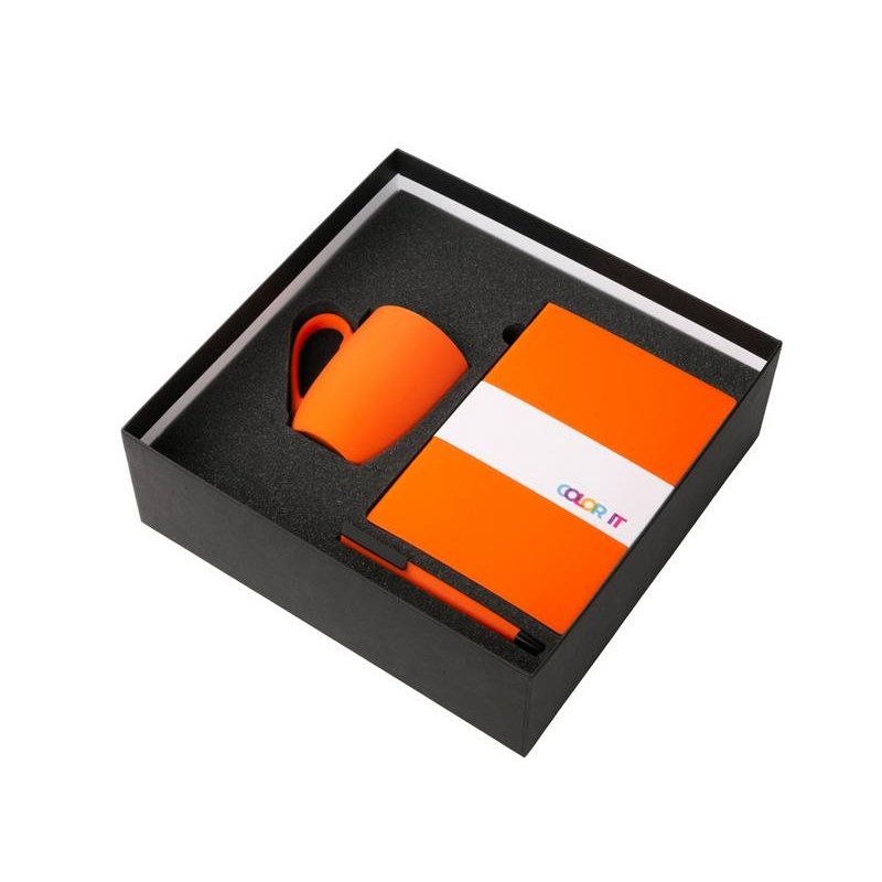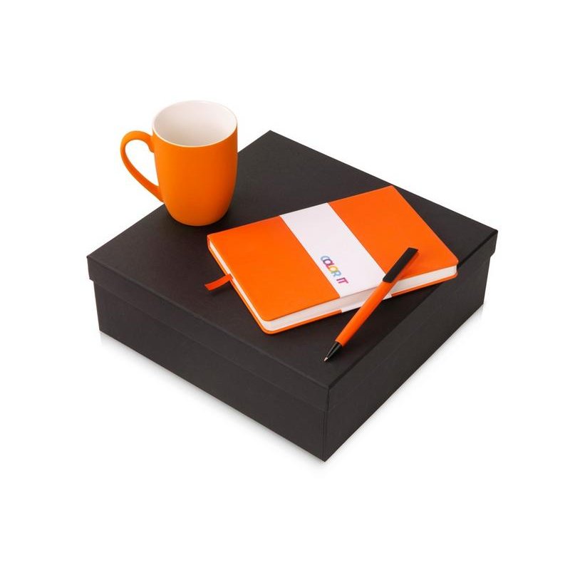 - Материал товара:блокнот - искусственная кожа с покрытием soft-touch, ручка - пластик с покрытием soft-touch, кружка - фарфор с покрытием soft-touch.