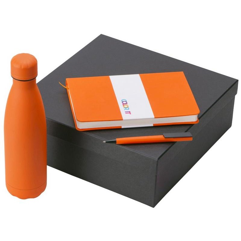 - Материал товара:блокнот- полиуретан с покрытием софт-тач, картон, ручка- пластик с покрытием soft-touch, термобутылка- нержавеющая cталь с покрытием soft-touch