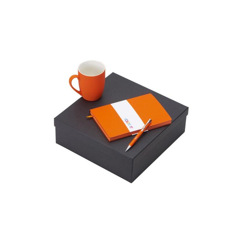 - Материал товара:блокнот - искусственная кожа с покрытием soft-touch, ручка - алюминий с покрытием soft-touch, кружка - фарфор с покрытием soft-touch, коробка - картон