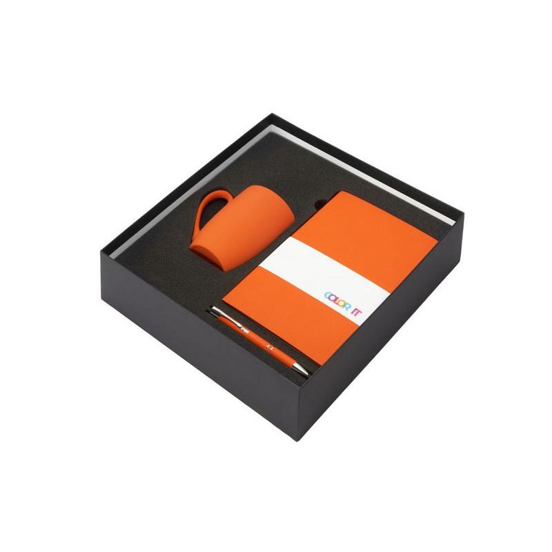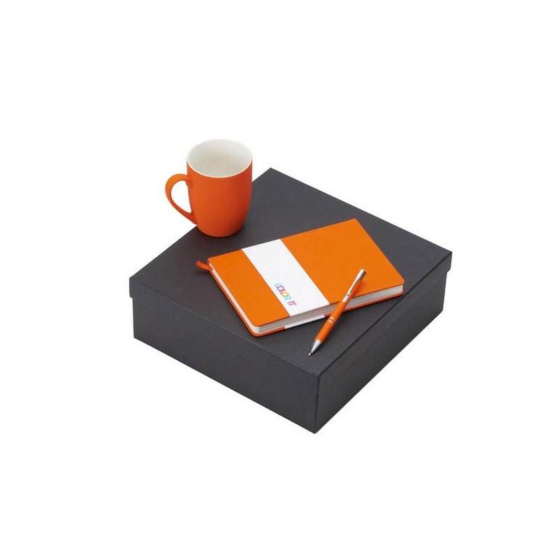 - Материал товара:блокнот - искусственная кожа с покрытием soft-touch, ручка - алюминий с покрытием soft-touch, кружка - фарфор с покрытием soft-touch, коробка - картон