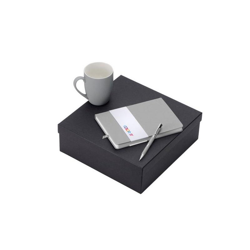 - Материал товара:блокнот - искусственная кожа с покрытием soft-touch, ручка - алюминий с покрытием soft-touch, кружка - фарфор с покрытием soft-touch, коробка - картон