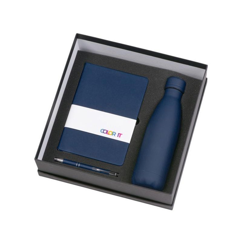- Материал товара:блокнот - искусственная кожа с покрытием soft-touch, ручка - алюминий с покрытием soft-touch, термобутылка - нержавеющая cталь с покрытием soft-touch, коробка - картон