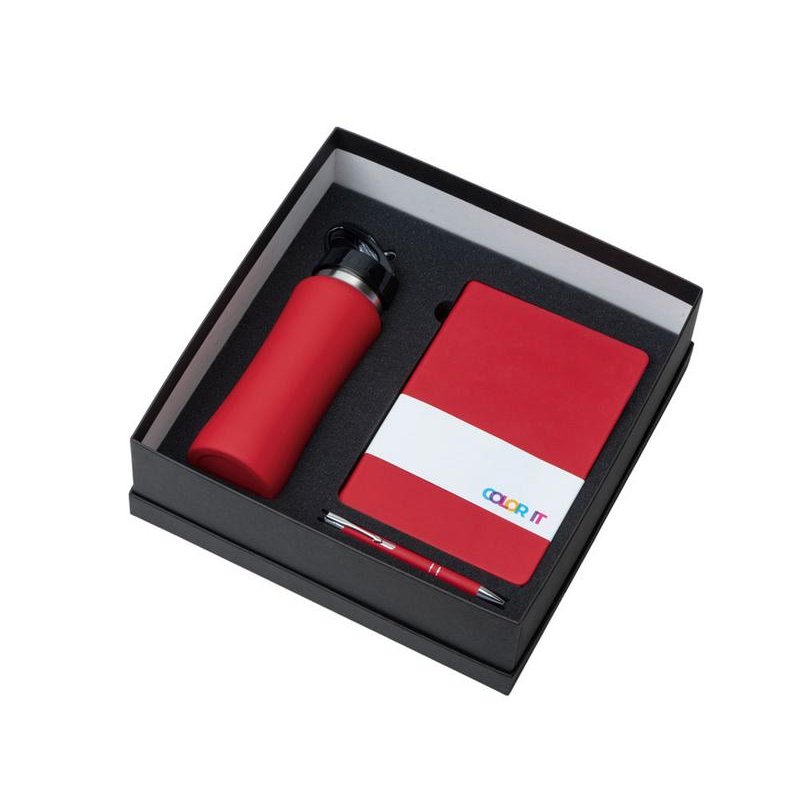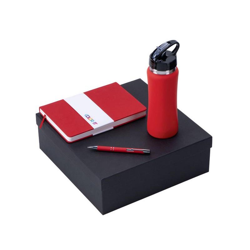 - Материал товара:блокнот - полиуретан с покрытием софт-тач, ручка - алюминий с покрытием soft-touch, бутылка - нержавеющая cталь/пластик с покрытием soft-touch, коробка - картон