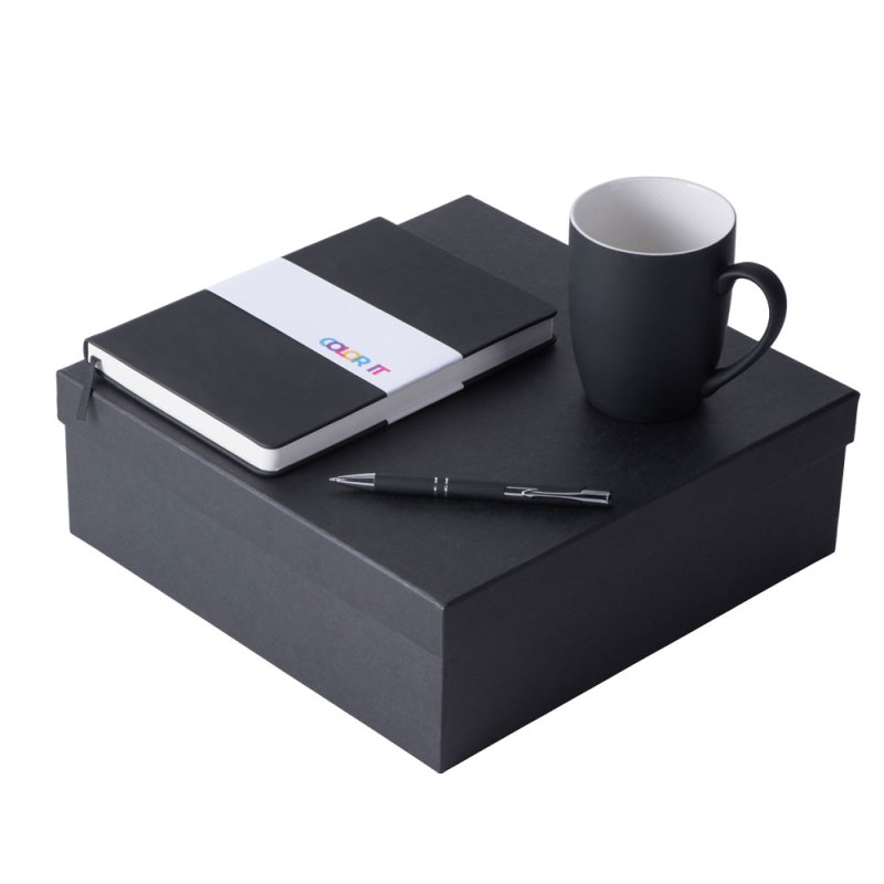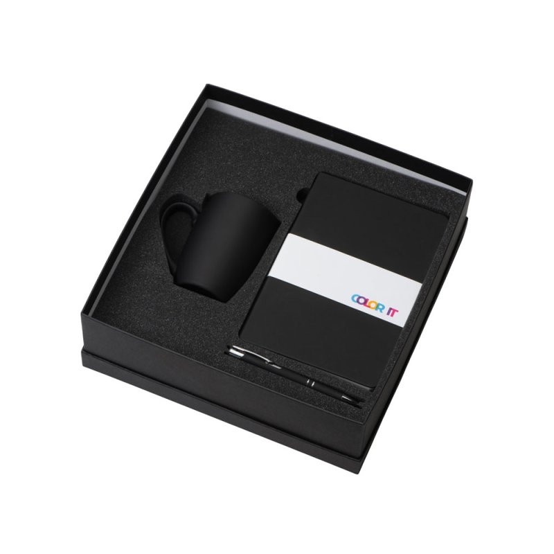 - Материал товара:блокнот - полиуретан с покрытием софт-тач, картон, ручка - алюминий с покрытием soft-touch, кружка - фарфор с покрытием soft-touch, коробка - картон