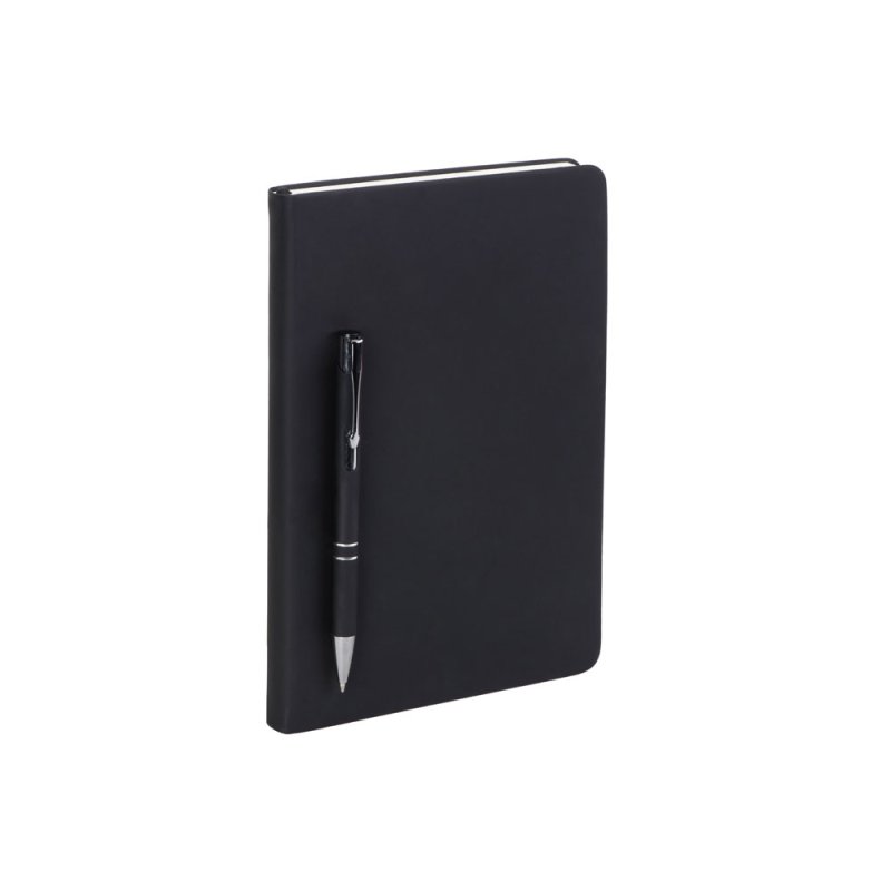 Бизнес-блокнот в твёрдой обложке имеет ляссе в тон обложки и среза. Бумажный блок разлинован в линейку и выполнен из бумаги, полученной из древесины из специальных восполняемых лесных ресурсов, имеет сертификат FSC.