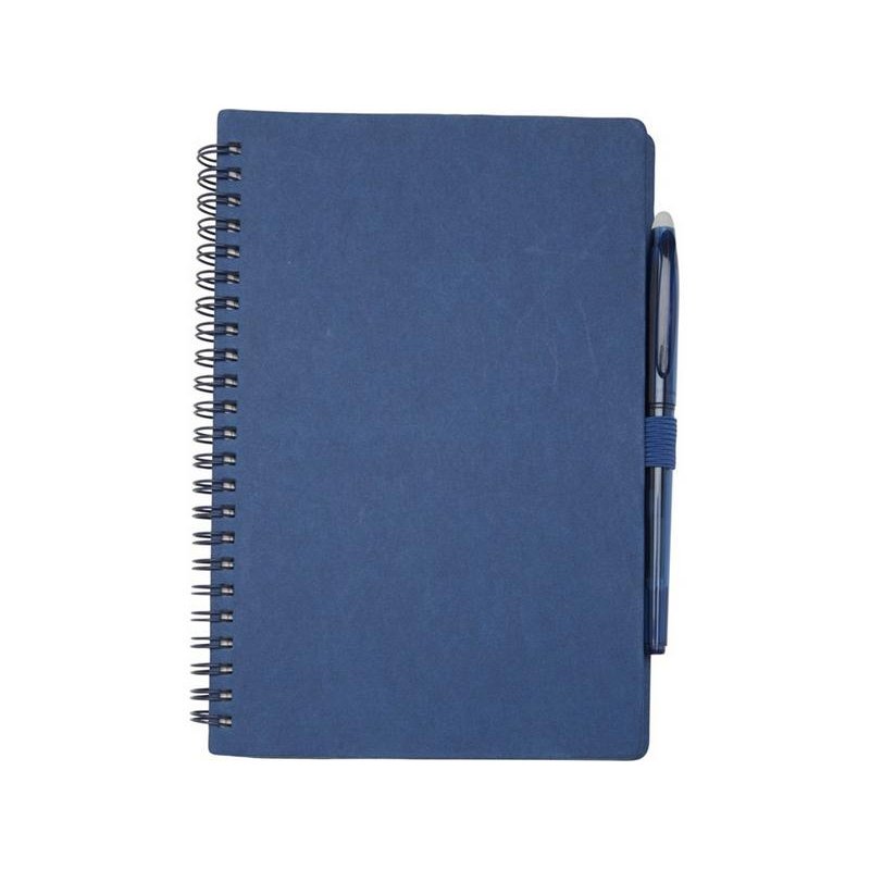 Многоразовый набор из ручки и блокнота в мягкой обложке из каменной бумаги. Блокнот имеет обложку из картона, закругленные углы и 32 листа линованной бумаги плотностью 120 г/м². В производстве каменной бумаги не используется дерево, а на сам процесс изготовления затрачивается гораздо меньше энергии в сравнении с производством переработанной или целлюлозной бумаги. Сзади имеется карман для хранения черной протирочной ткани (входит в комплект). Ручка из переработанного пластика с стираемыми чернилами, прозрачным корпусом, белым ластиком сверху и однотонной цветной рукояткой. Цвет чернил: черный. Длина непрерывной линии: 250 метров. Размер пера: 0,7 мм.