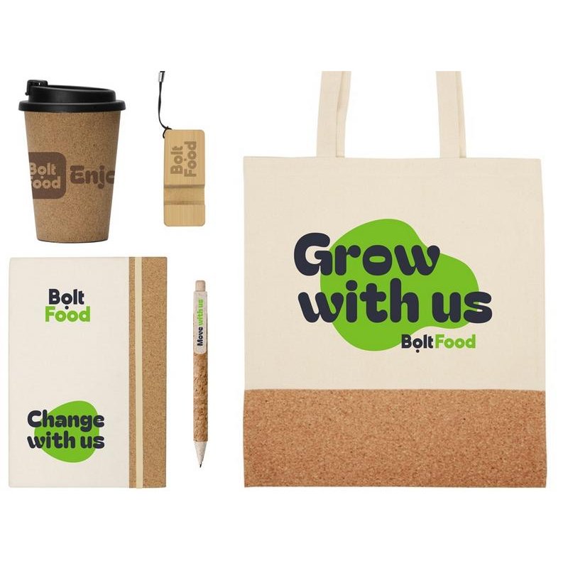 - Материал товара:сумка-100% хлопок, стакан и ручка- пробка, пластик, блокнот- пробка, картон, бумага, брелок- бамбук