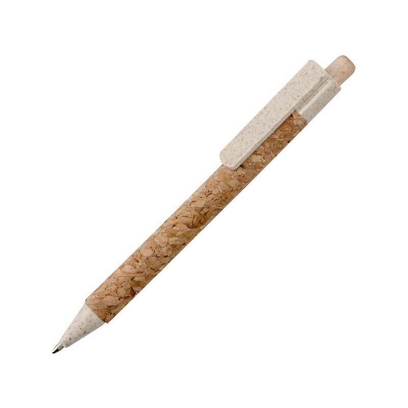 Многоразовый стакан с двойными стенками выполнен из древесины пробкового дерева, также как и корпус шариковой ручки с нажимным механизмом.
