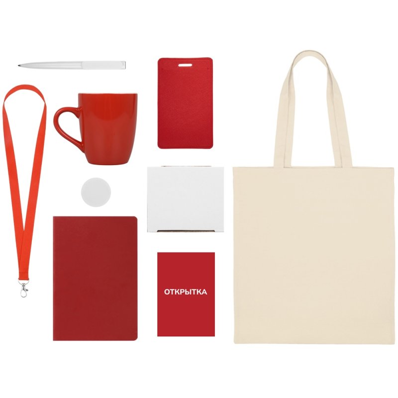 - Материал товара:шоппер- 100% хлопок, блокнот и чехол- искусственная кожа, ручка и держатель- пластик, кружка- керамика, ланъярд- RPET, открытка- бумага