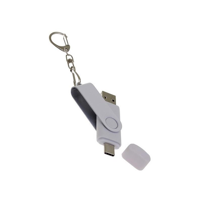 Флеш-накопитель 2 в 1 поворотный механизм, c дополнительным разъемом Type-C с одноцветным металлическим клипом, объем памяти USB3 64 Гб. Пластиковый корпус.