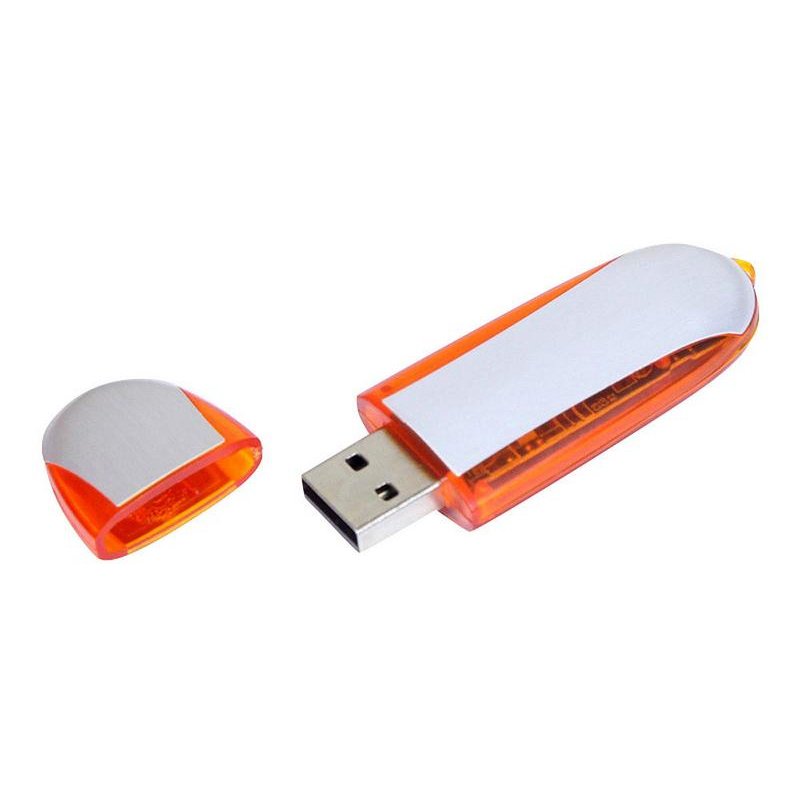 Флеш-накопитель промо овальной формы, 32 Гб. Пластиковый корпус, металлические вставки.