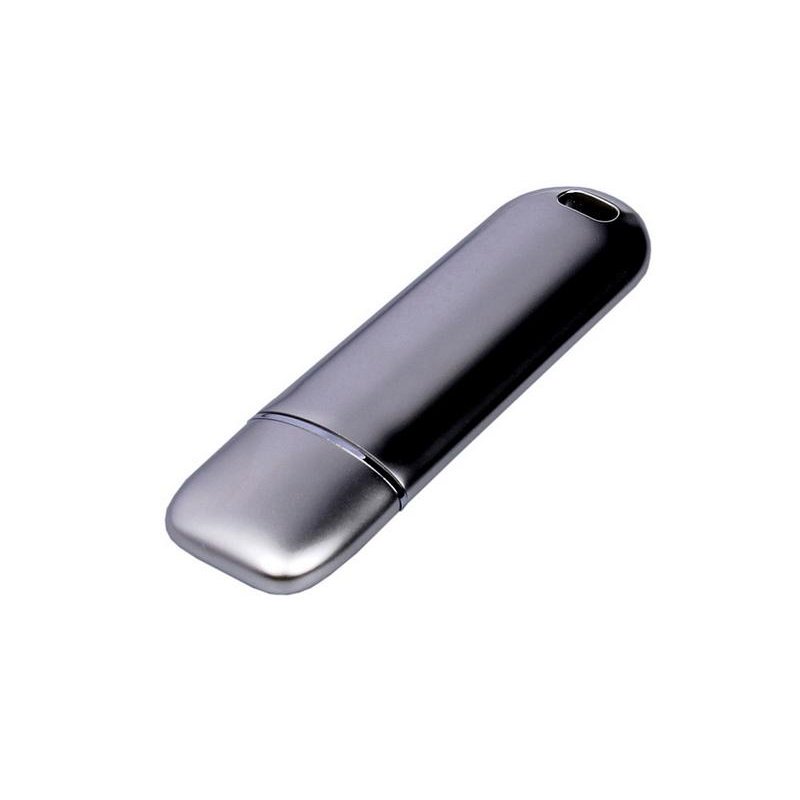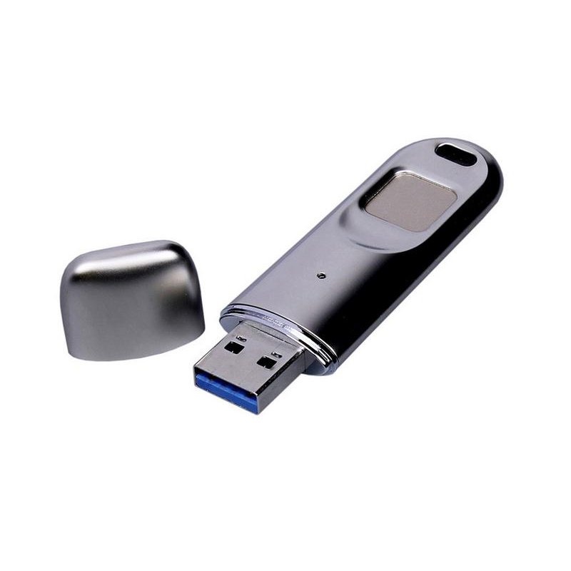 Классическая металлическая флешка с колпачком и сканером отпечатков пальцев.