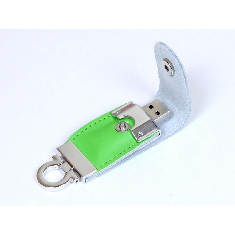 Флеш-накопитель из натуральной кожи с металлическими вставками, в виде брелока для ключей, объем памяти 8 Гб. Кожаный корпус.