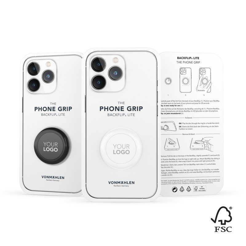 VONMAHLEN Backflip® Lite — ультратонкий держатель для телефона, который помогает комфортно пользоваться смартфоном даже на ходу. Он вращается на 360°, поэтому подходит как левшам, так и правшам. Благодаря встроенной функции подставки вы можете смотреть свои любимые сериалы в любое время и в любом месте. Чтобы зарядить смартфон без проводов, Backflip® Lite можно легко снять.
