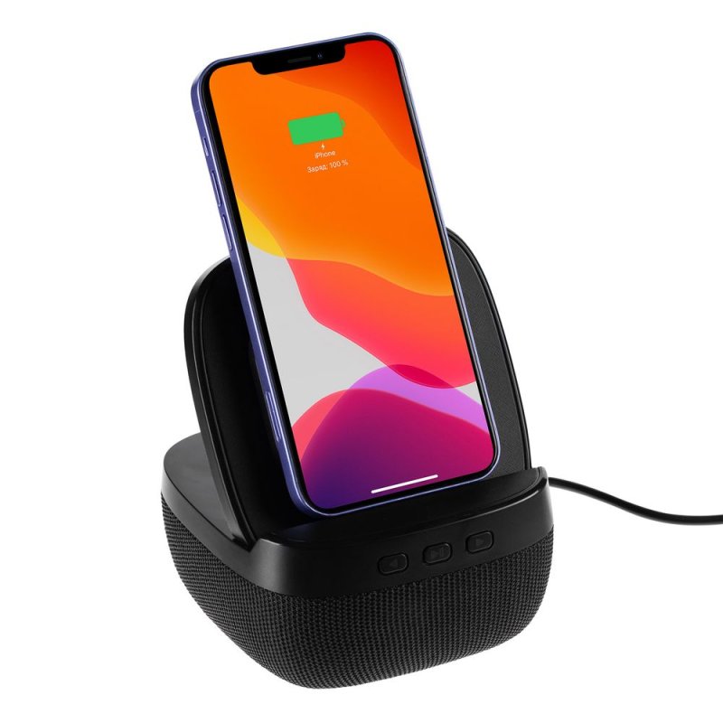 Колонка c беспроводной зарядкой Esca — многофункциональное устройство, которое позволяет слушать музыку по Bluetooth и одновременно заряжать смартфон или наушники. Мощности динамика 5 Вт будет достаточно, чтобы наполнить звуком помещение до 30 м².