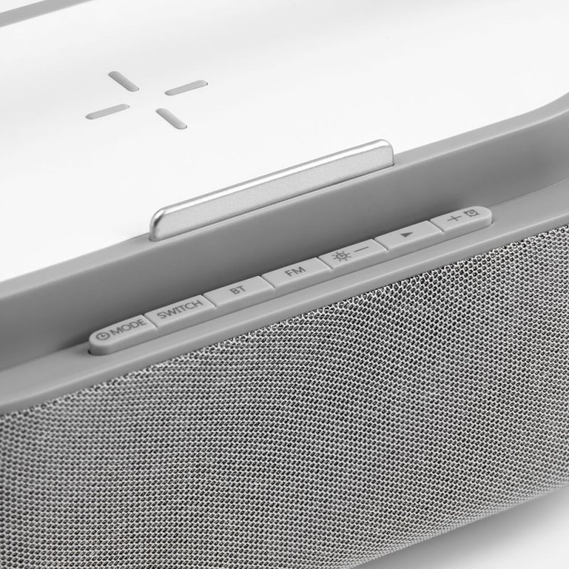 Два динамика мощностью 5 Вт позволяют наполнить звуком помещение площадью до 30 м². Емкая встроенная батарея позволяет использовать колонку и лампу без привязки к розетке.