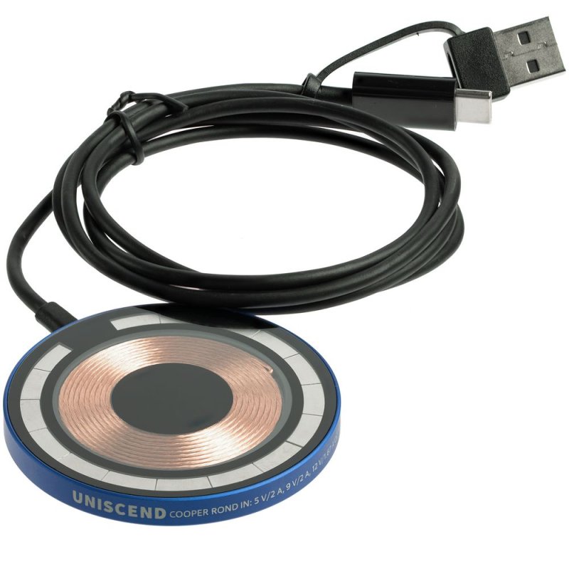 Магнитное зарядное устройство Cooper Rond — это не только притягивающая взгляд электронная начинка под прозрачной панелью, но и мощная (до 15 Вт) беспроводная зарядка Qi.