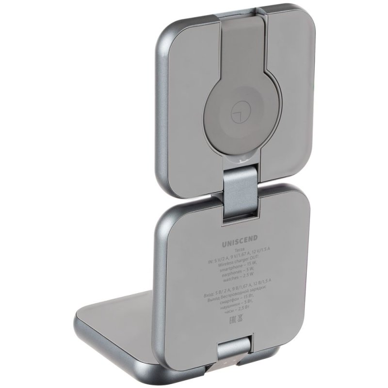 Terza — компактное устройство беспроводной зарядки, которое удобно использовать и в офисе, и в дороге, так как станция аккуратно складывается в стильный куб. Благодаря продуманной конструкции пластины можно зафиксировать в любом положении, в том числе свернуть из них удобную подставку для телефона.