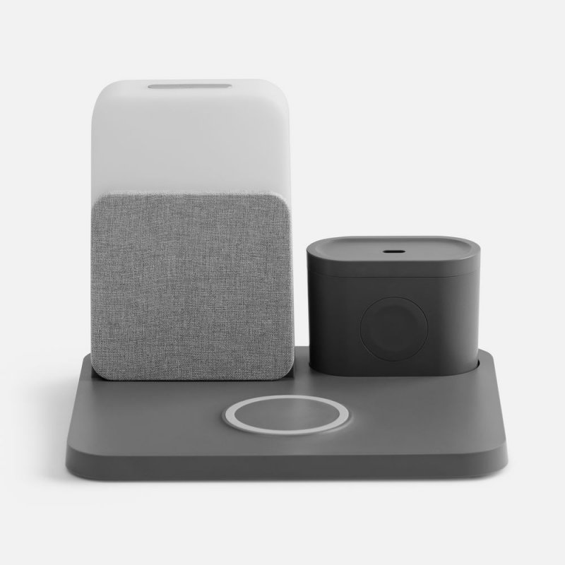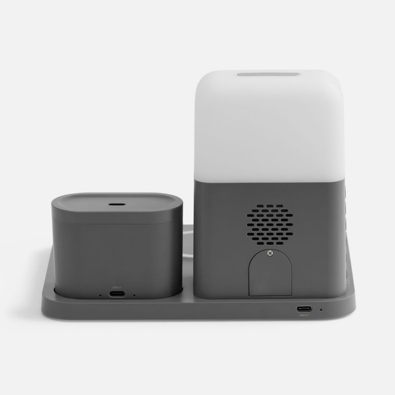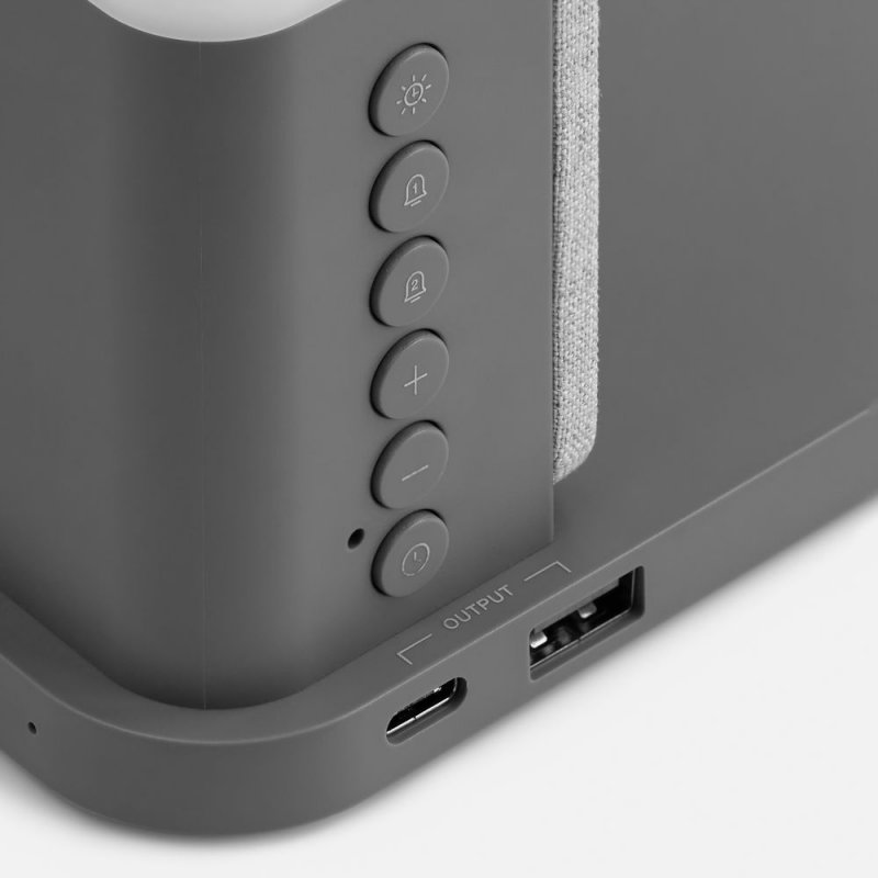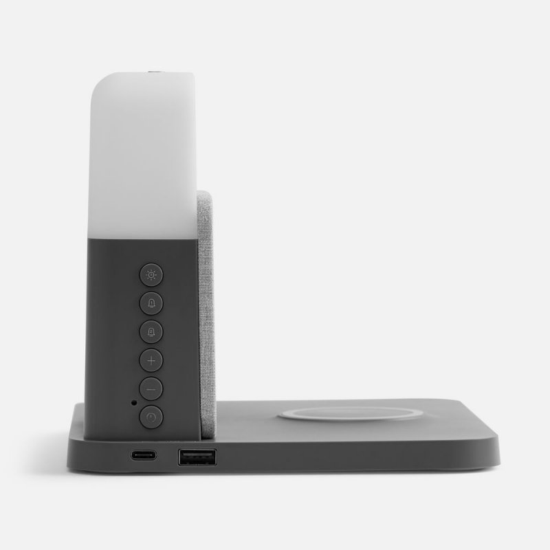 Large Charge — многофункциональное устройство, которое сочетает в себе функции станции для проводной и беспроводной зарядки разнообразных устройств, настольных часов с будильником и лампы.