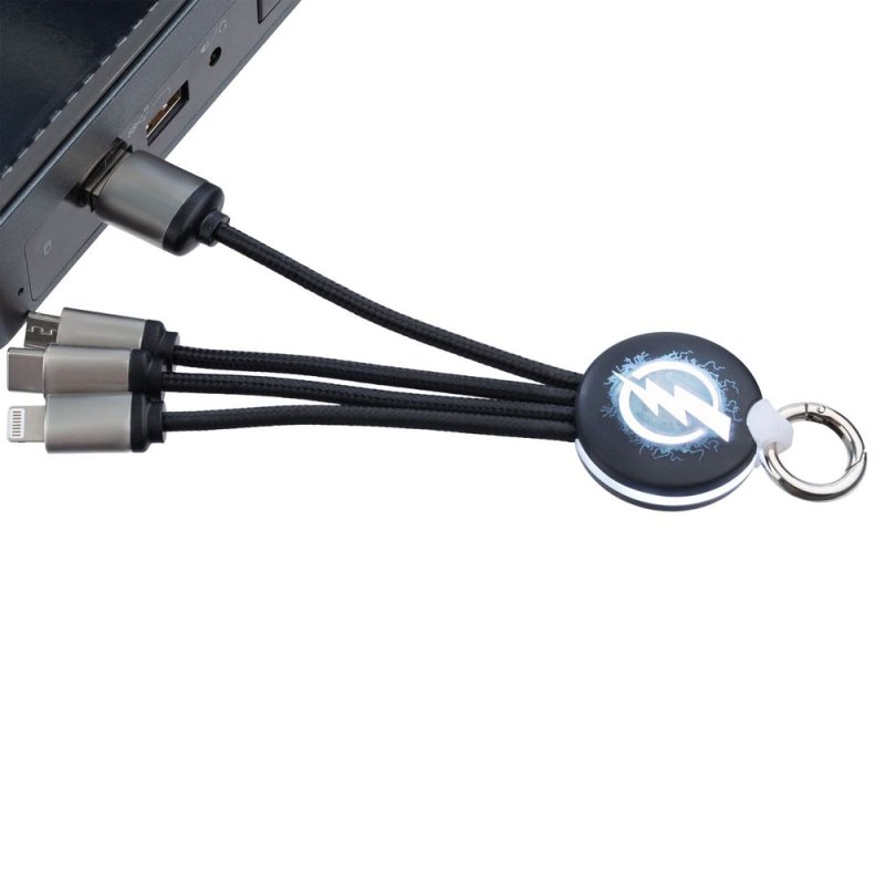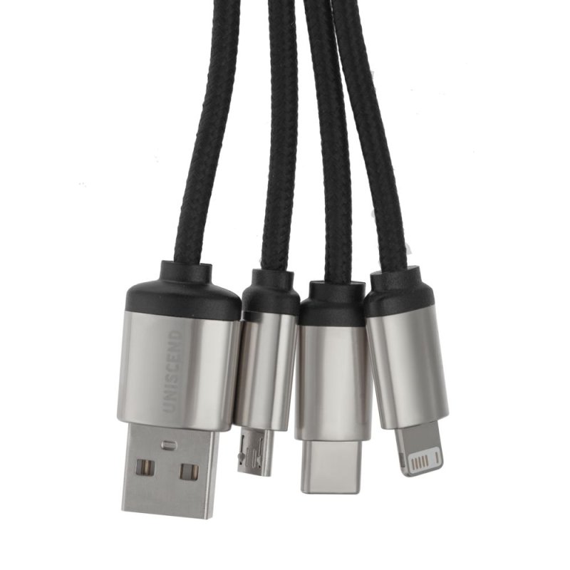 Кабель предназначен для зарядки устройств с разъемами Type-C, Micro USB и Lightning.