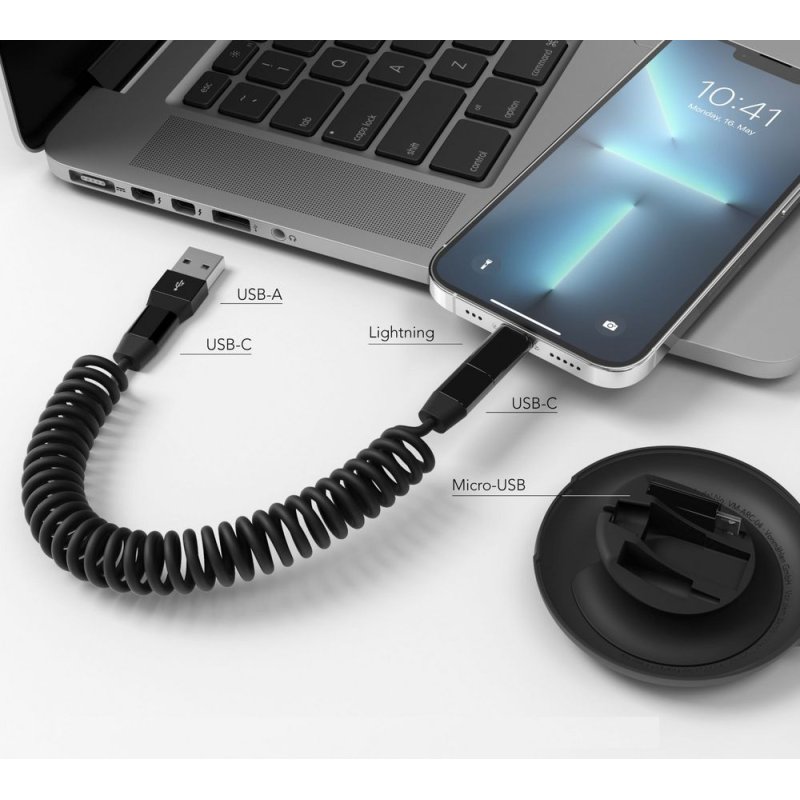 Allroundo Еco — экологичный компактный универсальный кабель для быстрой зарядки и передачи данных (в конфигурации с USB-C на USB-C), который более чем на 75% состоит из переработанных материалов. Витой кабель, длина которого достигает 90 см, обеспечивает еще большую свободу передвижения во время процесса зарядки. В комплект входят адаптеры с разъемами USB-A, microUSB и Lightning, поэтому кабель подходит для всех современных устройств.