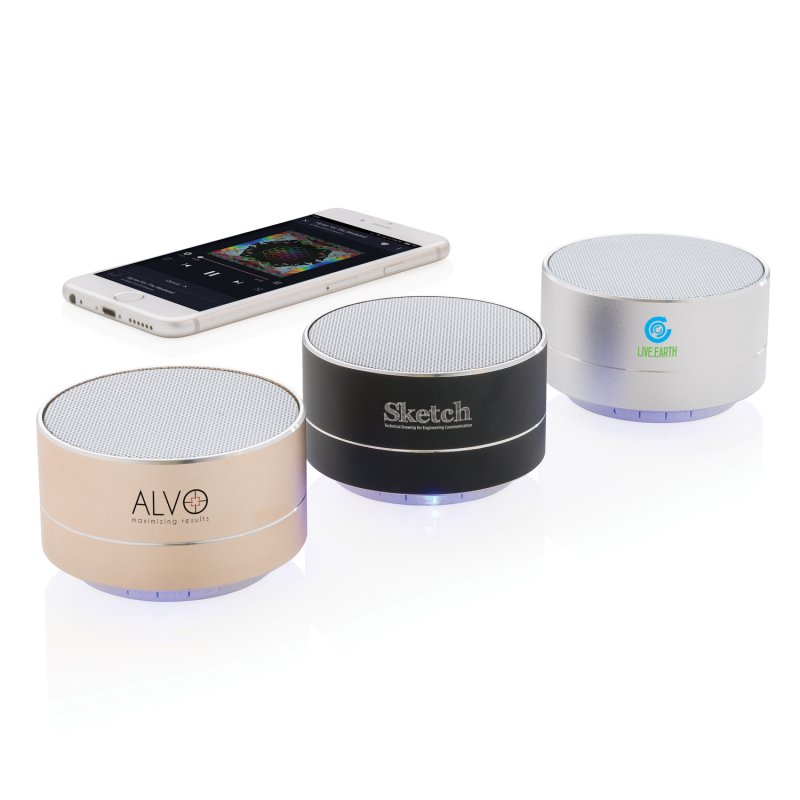 Беспроводная колонка BBM мощностью 3Вт благодаря встроенному аккумулятору на 300 мА/ч обеспечит вас 4 часами любимой музыки без дополнительной подзарядки. Стильный алюминиевый корпус колонки отлично гармонирует с синей подсветкой на дне. Отличное соединение до 10 метров делает ее невероятно удобной в использовании, кроме того, с помощью колонки вы сможете отвечать на входящие звонки.