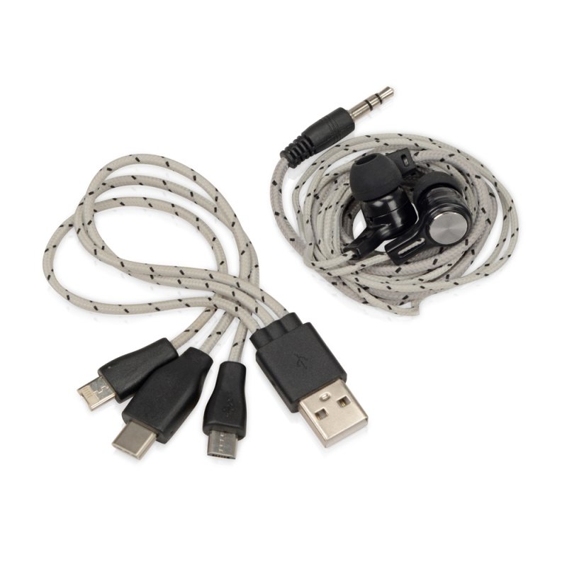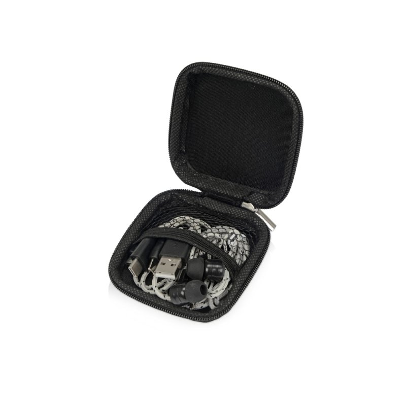 Набор In motion — оптимальный бизнес-подарок для подвижных, активных людей. В набор входят проводные наушники с минималистичным дизайном и зарядный кабель 3 в 1 с разъемами micro USB, Lightning (для устройств Apple) и USB-C. Яркий цвет кабеля не позволит ему затеряться среди других вещей. Набор поставляется в компактном чехле на молнии.