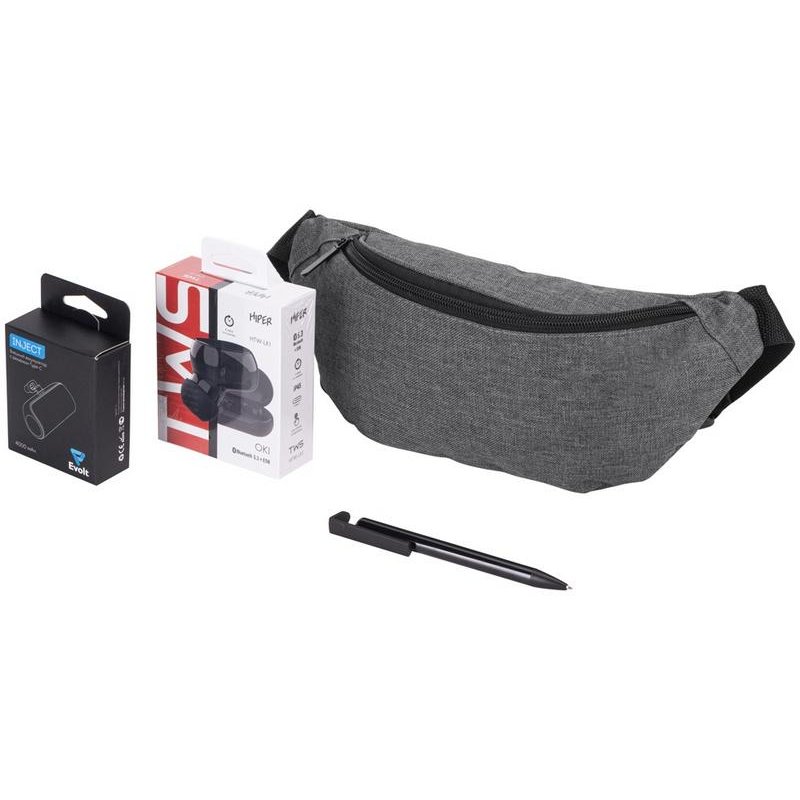 - Комплектность:сумка на пояс, ручка шариковая, беспроводные наушники, повербанк