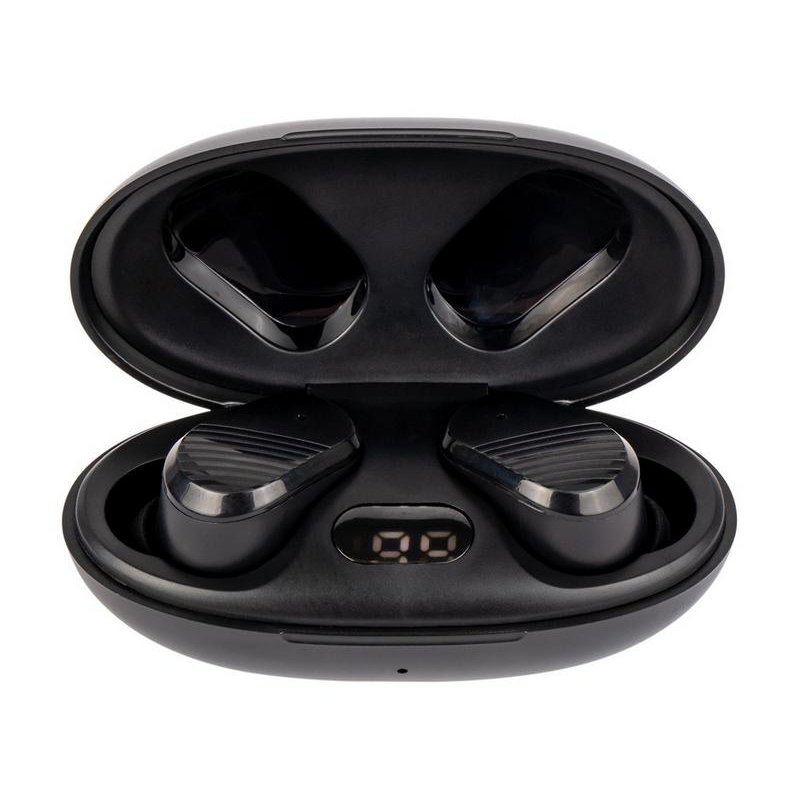 • Широкий функционал гарнитуры дополняет оригинальный зарядный кейс с откидной крышкой и цифровым дисплеем с отображением уровня зарядки в процентах.