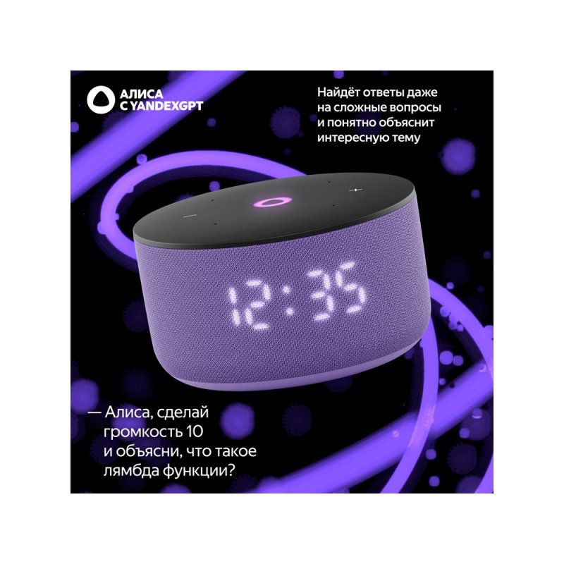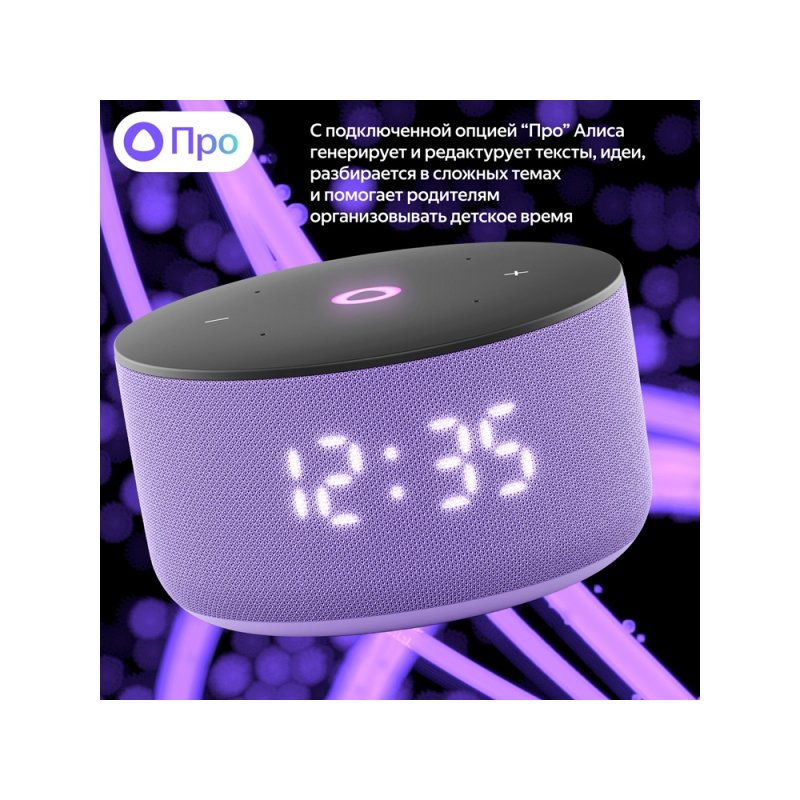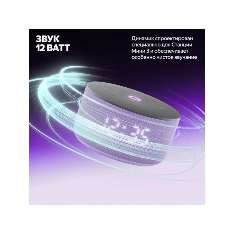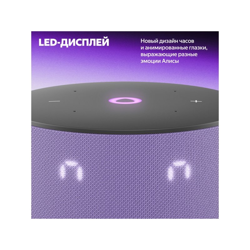 Благодаря более мягкой, цельной и гармоничной форме корпуса Станция Мини 3 отлично смотрится в любом современном интерьере. Цветовая палитра умной колонки тоже обновилась: можно выбрать классические чёрный и серый, а для ценителей акцентов подойдёт пастельный фиолетовый оттенок.